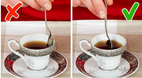 2.茶匙不留在杯子里,但必须放在茶碟的右侧。它不应该被放在茶托上。