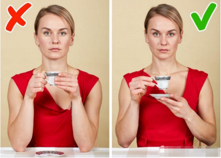 3.用一只手拿着茶杯手柄,另一只手拿着碟子。用双手握住杯子,把碟子留在桌上,这被认为是庸俗的。