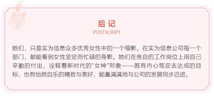 实为信息见证着她在工作中的一路成长,也见证着她一步步迈向幸福生活:她告诉小编,她今天的幸福生活和这份工作密切相关,因为她的先生是经项目甲方介绍认识再牵手走近婚姻的。也藉由自己对这份工作和这个行业的热爱,从而影响到先生脱离原来从事的金融行业,进入到信息化行业和她一起并肩打拼。如今,她先生也考取了专业资质,她们夫妻对这份事业和信任她们的和户格外珍惜与感恩。