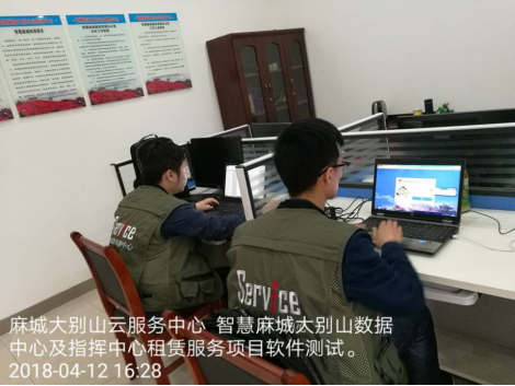 智慧麻城大别山数据中心及指挥中心租赁服务项目着眼于为智慧麻城的应用提供基础系统,主要针对的是机房基础环境租赁、网络基础环境租赁、云平台租赁和安全交换平台租赁,以及数据中心的数据收集、整理与应用等业务服务,以及实现部分条件成熟的应用子系统功能的正常运行,并为项目下一阶段建设做好应用功能和技术上的预留。下图为实为员工正在进行软件测试。